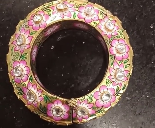 Meenakari bangles golden and pink floral design Polki studded