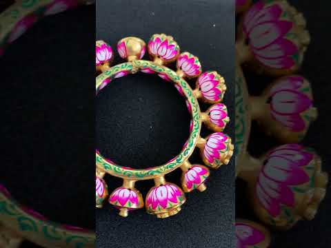 Pink and green lotus meenakari bangles kada
