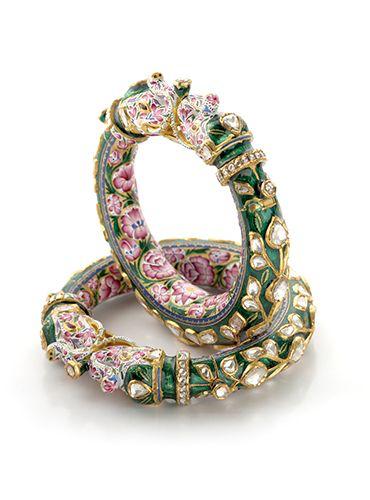 Indian meenakari bangles handpainted Polki studded mint green and blue