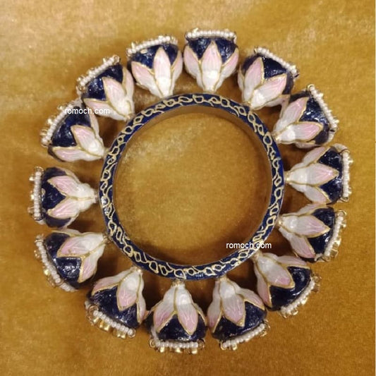 Indian meenakari blue and pink floral design Kundan studded bangles kada