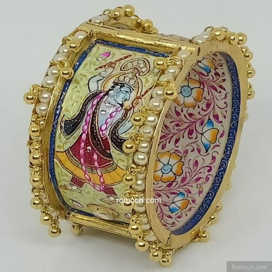 Indian meenakari Radha Krisha handpainted Polki bangles (pair)