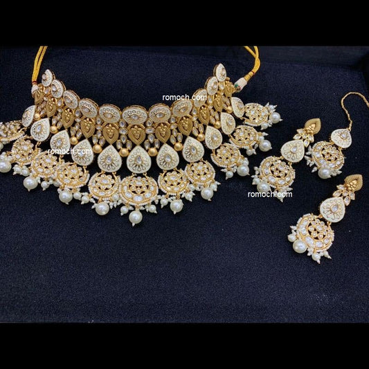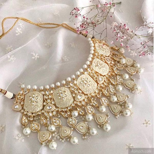 Meenakari Kundan bridal choker layered set ivory