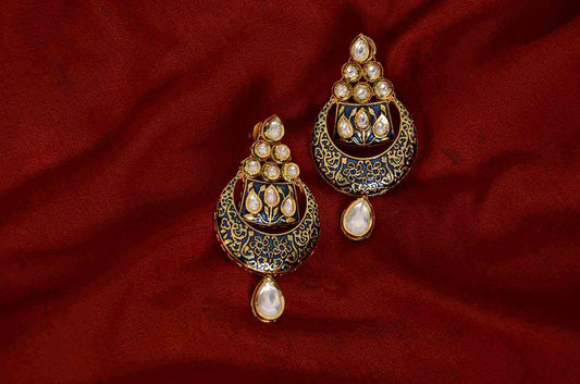Kundan Meenakari earrings dark blue chandbali design