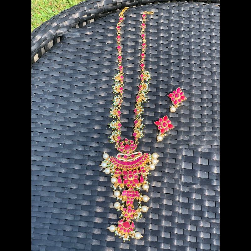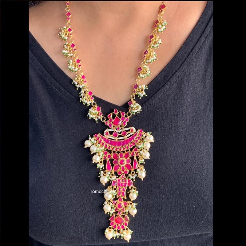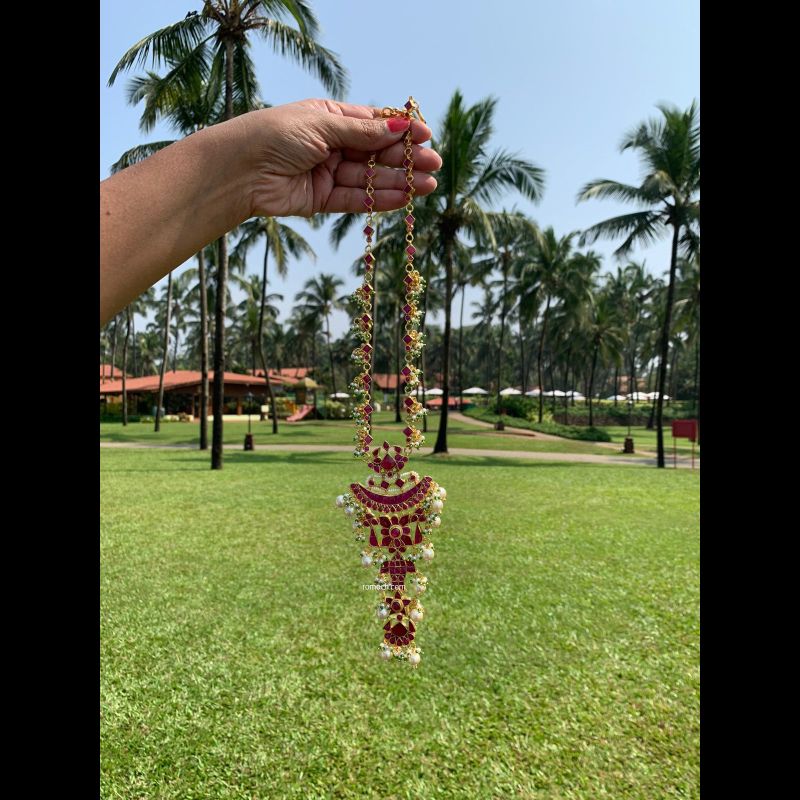 Indian Kundan necklace set long pendant mala Victorian style ruby green